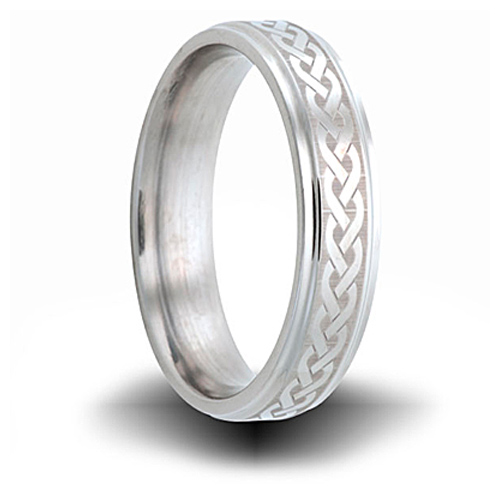 Weave pattern titanium ring has step down edges. Width: 6mm. Deluxe comfort fit. Enjoy manufacturer's lifetime warranty for re-sizing and re-furbishing. Made of aircraft grade titanium in the USA. Aircraft grade titanium [Ti 6Al-8V] is comprised of 90% titanium, 6% aluminum, 8% vanadium. It is hypoallergenic and guaranteed not to cause allergic reactions, skin irritations or discoloration of any sort. While pure grades of titanium [99.9%] used in most other titanium jewelry is very durable, Ti 6Al-8V is 2x stronger and 2.5x to 5x harder. This alloy has a tensile strength of up to 150,000 psi and a Brinell hardness value of 330.