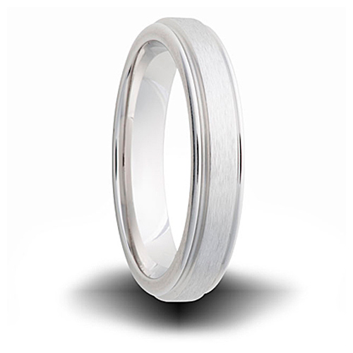 Deluxe comfort fit. Brushed finish, step down band. Width: 6mm. Cobalt rings are made from a unique alloy blend that consists of cobalt and other substances to offer a bright white alternative metal. It will never need plating and is so white it is often compared to platinum in color. This metal is bio-inert, making it compatible to the body. Cobalt is commonly used in detistry and artificial joints because of its lighter weight and resistance to corrosion. Cobalt is harder than platinum with a scratch resistant surface. It will not break, shatter or chip thus providing extreme durability and wear. The luster and finish will not fade or tarnish in any way. Cobalt can be polished as you would a platinum ring.