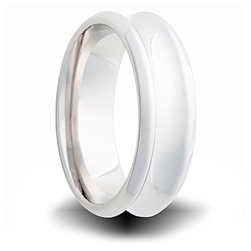 This concave cobalt wedding band has a polished finish. Comfort fit. Ring width: 7mm. Made in USA. Cobalt rings are made from a unique alloy blend that consists of cobalt and other substances to offer a bright white alternative metal. It will never need plating and is so white it is often compared to platinum in color. This metal is bio-inert, making it compatible to the body. Cobalt is commonly used in detistry and artificial joints because of its lighter weight and resistance to corrosion. Cobalt is harder than platinum with a scratch resistant surface. It will not break, shatter or chip thus providing extreme durability and wear. The luster and finish will not fade or tarnish in any way. Cobalt can be polished as you would a platinum ring.