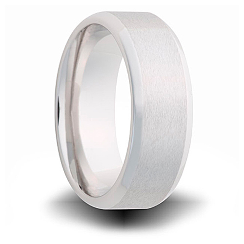 Deluxe comfort fit. Brushed finish, pipe cut band. Width: 8mm. Thickness: 2.15mm. Cobalt rings are made from a unique alloy blend that consists of cobalt and other substances to offer a bright white alternative metal. It will never need plating and is so white it is often compared to platinum in color. This metal is bio-inert, making it compatible to the body. Cobalt is commonly used in detistry and artificial joints because of its lighter weight and resistance to corrosion. Cobalt is harder than platinum with a scratch resistant surface. It will not break, shatter or chip thus providing extreme durability and wear. The luster and finish will not fade or tarnish in any way. Cobalt can be polished as you would a platinum ring.