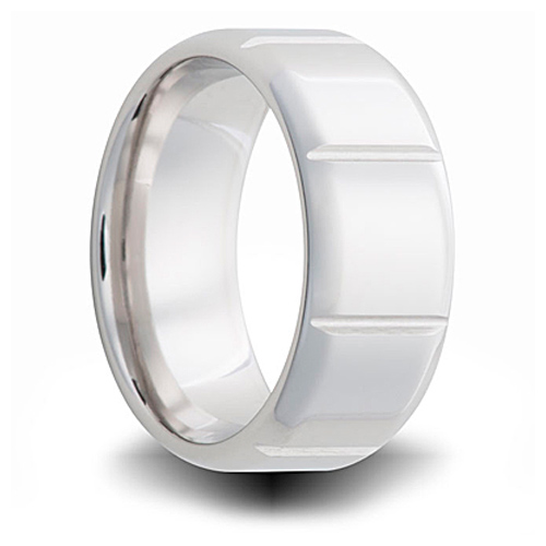 Deluxe comfort fit. Polished finish, pipe cut band. Width: 8mm. Cobalt rings are made from a unique alloy blend that consists of cobalt and other substances to offer a bright white alternative metal. It will never need plating and is so white it is often compared to platinum in color. This metal is bio-inert, making it compatible to the body. Cobalt is commonly used in detistry and artificial joints because of its lighter weight and resistance to corrosion. Cobalt is harder than platinum with a scratch resistant surface. It will not break, shatter or chip thus providing extreme durability and wear. The luster and finish will not fade or tarnish in any way. Cobalt can be polished as you would a platinum ring.