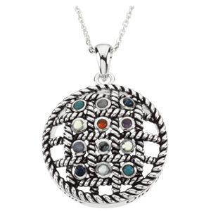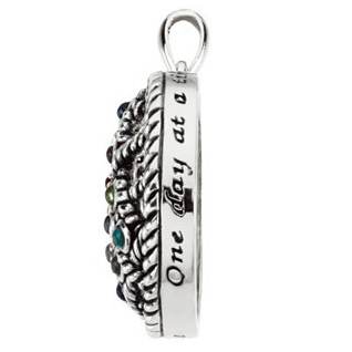 Sterling silver 12 step sobriety pendant dangles from a sterling silver 18in chain. Pendant size: 28.25mm x 24.50mm. Set with 12 2.0mm genuine stones. Weight: 10.60 grams. From Deborah J. Birdoes' extraordinary Inspirational Blessings Collection of Jewelry. SOBRIETY STONES FOR 12 STEPSStep 1 - Acceptance (Amethyst)Step 2 - Faith (Peridot)Step 3 - Surrender (Azurite, Smokey Quartz or Ruby)Step 4 - Honesty (Turquoise, Apatite or Obsidian)Step 5 - Courage (Carnelian or Sodalite)Step 6 - Willingness (Charoite or Fluorite)Step 7 - Humility (Quartz Crystal)Step 8 - Forgiveness (Peridot or Agate)Step 9 - Freedom (Rose Quartz or Sodalite)Step 10 - Perseverence (Snowflake Obsidian or Pearls)Step 11 - Patience (Turquoise or Iolite[Water Sapphire])Step 12 - Love (Azurite or Labradorite)