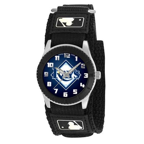 The Tampa Bay Rays Rookie watch for young men features a round dial with team logo, stainless steel back and black adjustable Velcro strap. Maximum wrist size: six inches. It has quartz accuracy. It is shock resistant and water resistant. Limited lifetime warranty. Import.Strap Length: 5.5 in - 7 inWeight: 0.35 lbWidth: 34 mmCase: 31 mmLug: 12 mmThickness: 11 mmPackaged Dimensions: 3.25in W x 9in L x 0.75in HBattery: SR626 (1)