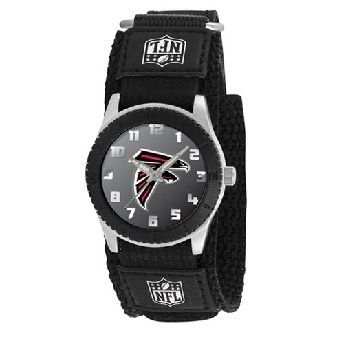 The Atlanta Falcons Rookie watch for young men features a round dial, stainless steel back and black adjustable Velcro strap. Maximum wrist size: six inches. It has quartz accuracy. It is shock resistant and water resistant. Limited lifetime warranty. Import.Strap Length: 5.5 in - 7 inWeight: 0.35 lbWidth: 34 mmCase: 31 mmLug: 12 mmThickness: 11 mmPackaged Dimensions: 3.25in W x 9in L x 0.75in HBattery: SR626 (1)