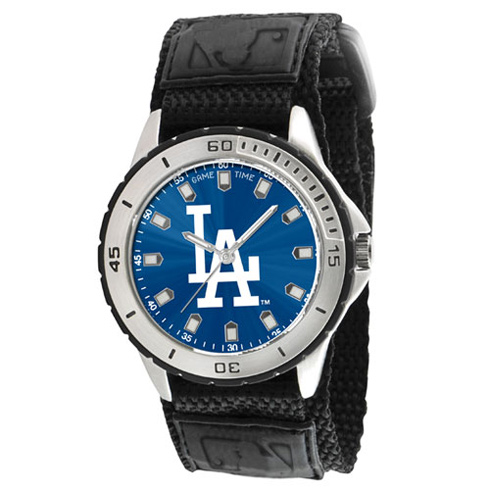 Los Angeles Dodgers Veteran watch features an officially licensed team logo, stainless steel back, black velcro band, rotating bezel, and quartz accuracy. It is shock and water resistant to 3ATM. Limited lifetime warranty. Strap Length: 5.5 in - 7.75 inWeight: 0.35 lbWidth: 46 mmCase: 42 mmLug: 22 mmThickness: 11 mmPackaged Dimensions: 2.75in W x 4.5in L x 4.5in HBattery: SR626 (1)