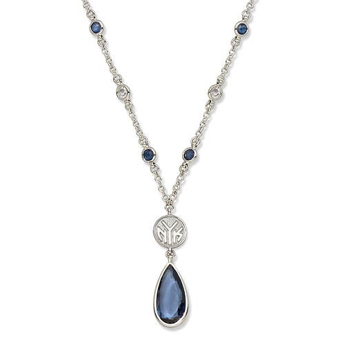 Soft-spoken in design, delicate round crystal stones representing the New York Knicks are intricately set within the silver-one necklace. At the center of this piece lies your team's logo encircled with a dainty pear-shaped crystal just below it. This piece is subtly designed for casual or business attire. Crystal colors are team's primary and most secondary colors. Crystal colors may vary. Charm sizes are approximately 9 mm diameter for the necklace. Charms are simulated rhodium plated alloy; chain is rhodium plated and is about 18". Jewelry is packaged in cardboard box with clear window and comes with a leatherette pouch for protection.