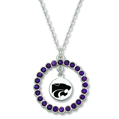 There is no mistaking your pride when you wear this Kansas State University Spirit Pendant Necklace! A silver-tone charm is deeply engraved with the logo of your favorite school and strikingly enameled in black to stand out. A circle surrounds the charm which is studded with your team's color in crystals! Item dimensions: 29mm x 3mm. 18in silver-tone chain with lobster clasp.