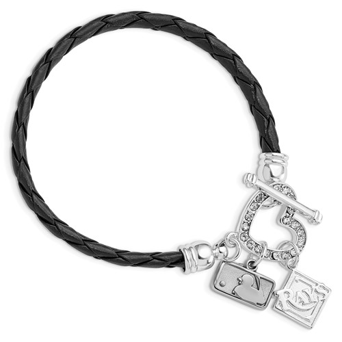 Keep your Tampa Bay Rays close at hand with this Devotion bracelet! At home, work, or at the game, show your team pride with this bracelet! This 7.5 inch pretty braided bracelet is made with faux leather for long lasting wear in your team's specific color. The sparkling heart-toggle closure symbolizes your love for the team and is a quick and convenient way to attach to your wrist securely. It is decorated with 2 highly polished silver toned charms; your team charm and the official MLB Batterman charm. This bracelet perfectly pulls together your game day look. Can be worn alone or for a trendy chic look can be layered with other chains and bangles.