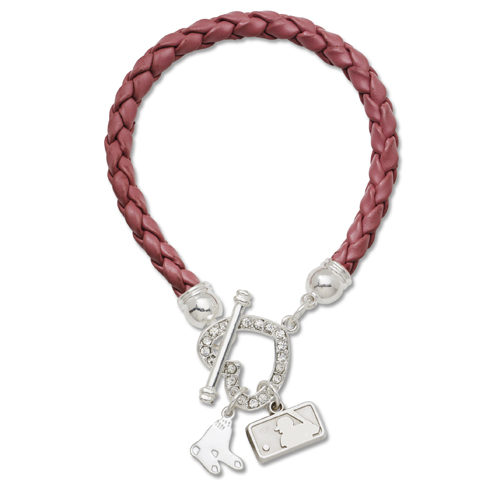 Keep your Boston Red Sox close at hand with this Devotion bracelet! At home, work, or at the game, show your team pride with this bracelet! This 7.5 inch pretty braided bracelet is made with faux leather for long lasting wear in your team's specific color. The sparkling heart-toggle closure symbolizes your love for the team and is a quick and convenient way to attach to your wrist securely. It is decorated with 2 highly polished silver toned charms; your team charm and the official MLB Batterman charm. This bracelet perfectly pulls together your game day look. Can be worn alone or for a trendy chic look can be layered with other chains and bangles.