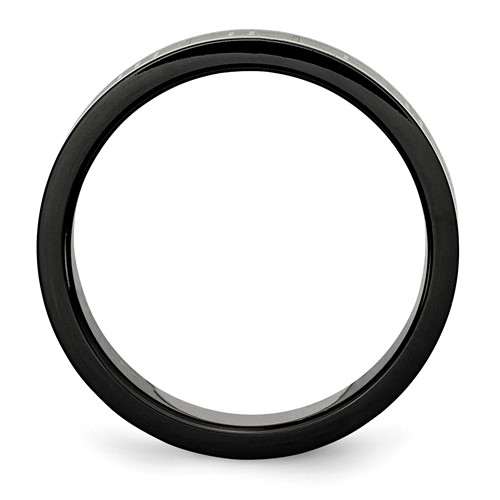Stainless steel roman numerals ring has a polished edge and brushed center finish. Width: 7mm. Comfort fit ring. Imported. This style is available in whole and half sizes, 7-13. Weight: Approx. 8.27 grams.