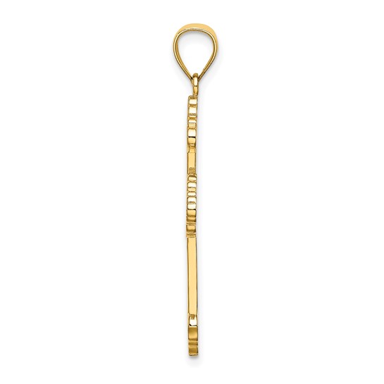 Floral scroll design cross pendant is made of polished solid 14k yellow gold. There is a heart at the bottom of the cross as well. Item length: 1.25 inches without bail. Fits up to a 3mm wide chain. Weight:2.5 grams. Made in Peru. Ships from USA.