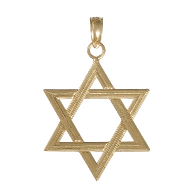 14K yellow gold two dimensional Star of David pendant. Weight: 1.3 grams. Measures 24mm x 15mm.