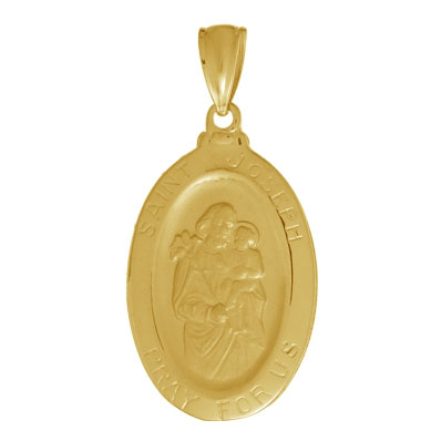 14K yellow gold high polished and satin finish Saint Joseph oval medal. Weight: 2.7 grams. Measures 26mm by 12mm.