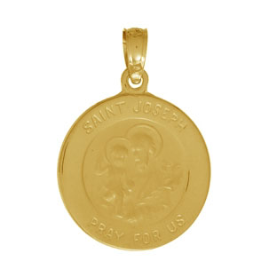High polished and satin finish Saint Joseph round medal charm is made of 14K yellow gold. Weight: 1.6 grams. Item size: 12mm. Made in the USA.