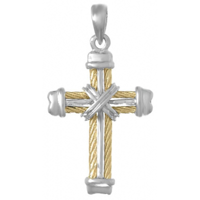 Sterling silver cross pendant with 14k yellow gold accents. Measures 33mm by 18mm.