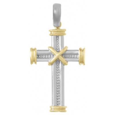 Sterling silver cross pendant with beaded center 14k yellow gold center and ends accent. Measures 35mm by 17mm.