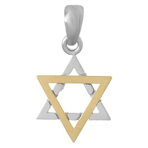 Sterling silver Star of David pendant with 14k yellow gold accent. Dimensions: 14mm x 14mm without bail. This pendant is smaller than a dime. Made i USA.