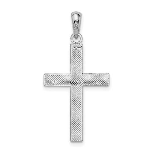 Sterling silver cross pendant with high polished finish. Item size: 1 1/4in x 3/4in. Weight: 2.7 grams. Made in the USA.