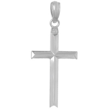 14kt white gold beveled cross pendant. Weight: 1.2 grams. Measures 23mm x 9mm.