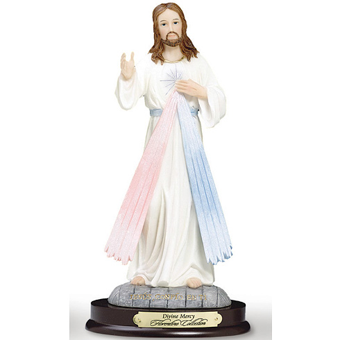 Jesus Divine Mercy from the Florentine Collection of Statues. Made of painted resin. On wooden base with engraved name plaque. Measures 8 inches tall.