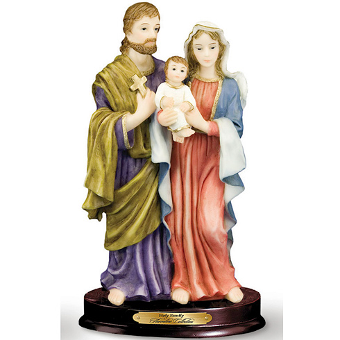The Holy Family from the Florentine Collection of Statues. Made of painted resin. On wooden base with engraved name plaque. Measures 8 inches tall.