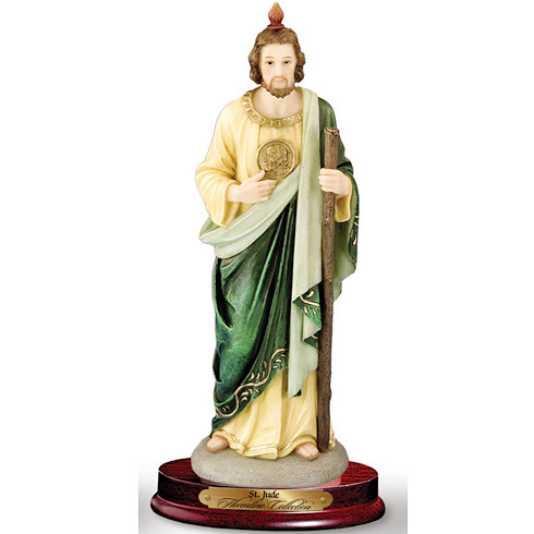 Saint Jude from the Florentine Collection of Statues. Made of painted resin. On wooden base with engraved name plaque. Measures 8 inches tall.