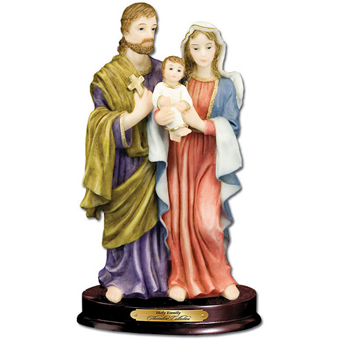 The Holy Family from the Florentine Collection of Statues. Made of painted resin. On wooden base with engraved name plaque. Measures 12 inches tall.