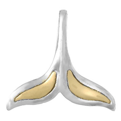 Sterling silver whale tail bail pendant with 14kt yellow gold accents. Item size: 1in x 1in. Hidden bail. Made in the USA.