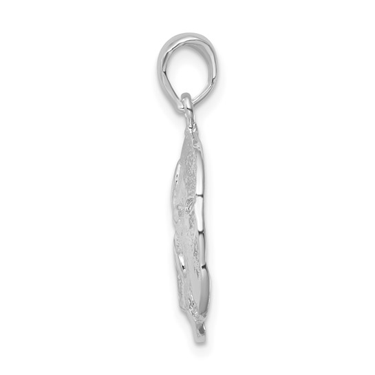 This small solid sterling silver sand dollar pendant has a bright polished finish. Dimensions: 5/8in by 5/8in without jump ring. Weight: 2.1 grams. Fits up to a 3mm wide chain. Made in Peru. Ships from USA.