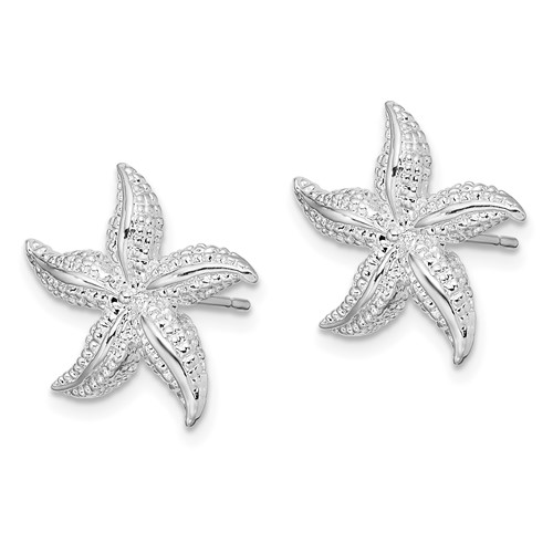 Sterling silver 2-D high polished and textured starfish post earrings. Weight: 3.0 grams. Dimensions: 3/4in diameter. Made in USA.