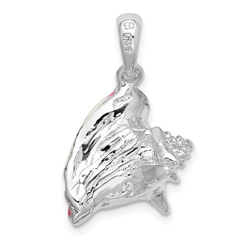 Sterling silver 3-D conch shell pendant with pink and white enamel. Item size: 5/8in x 3/4in. Made in the USA.