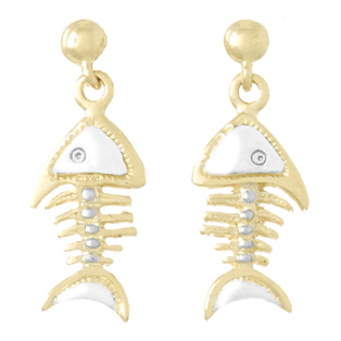 14kt white and yellow gold fishbone dangle earrings. Dimensions: 24mm by 10mm. Weight: 4.0 grams. Handcrafted in USA.