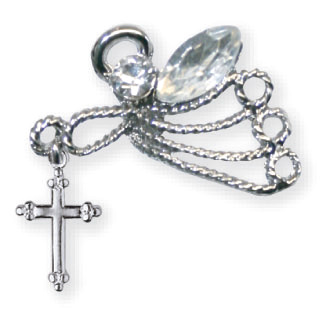 This genuine pewter crystal stone angel pin is sold in packs of two. Individually carded.
