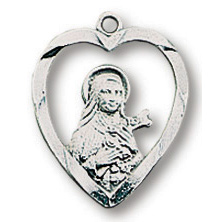 This genuine stering silver Saint Therese medal necklace comes on a light weight 18 inch silver chain. Deluxe gift boxed. Heart medal measures 5/8 inches tall.