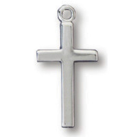 This genuine stering silver cross comes on a light weight 18 inch silver chain. Deluxe gift boxed. Cross measures 1/2 inch tall.