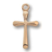 This genuine 14kt yellow gold filled Crusader cross comes on a light weight 18 inch gold plated chain. Deluxe gift boxed. Cross measures 1/2 inch tall.