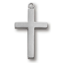 This genuine sterling silver cross comes on a light weight 18 inch silver chain. Deluxe gift boxed. Cross measures 11/16 inch tall.