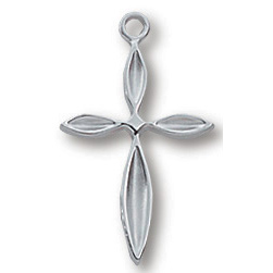 This genuine sterling silver concave passion cross comes on a light weight 18 inch silver chain. Deluxe gift boxed. Cross measures 11/16 inch tall.
