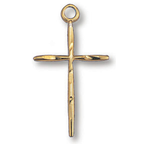 This genuine 14kt yellow gold filled beveled stick cross comes on a light weight 16 inch gold plated chain. Deluxe gift boxed. Cross measures 3/4 inch tall.