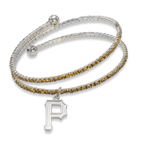 This Pittsburgh Pirates wrap-around bangle features a high powered silver tone finish and has a spiraling row of glittering yellow crystals. The coil design wraps easily around every size wrist and has silver tone round beads to finish the tips of each end. Adorned with a stylized team charm, eye catching in its own right, adds a signature detail that will provide energy and excitement to any outfit!