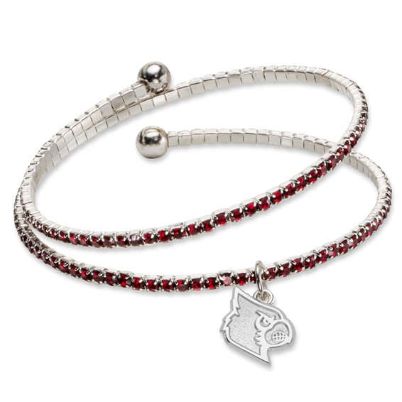 Bring it and bring it on strong! Amp up the love for the University of Louisville by wearing the Amped bracelet and love your team out loud! This wrap-around bangle features a high powered silver tone finish and has a spiraling row of glittering crystals that matches your team's color. The coil design wraps easily around every size wrist and has silver tone round beads to finish the tips of each end. Adorned with a stylized team charm, eye catching in its own right, adds a signature detail that will provide energy and excitement to any outfit!