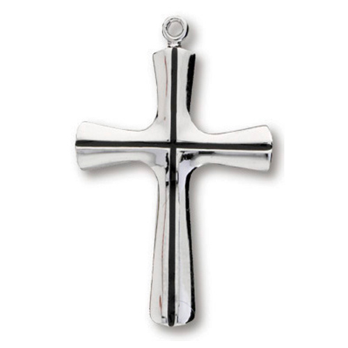 This genuine stering silver crusader cross comes on a heavy weight 24 inch stainless steel chain. Deluxe gift boxed. Cross measures 1 1/16 inches tall. Features enameled stripes.