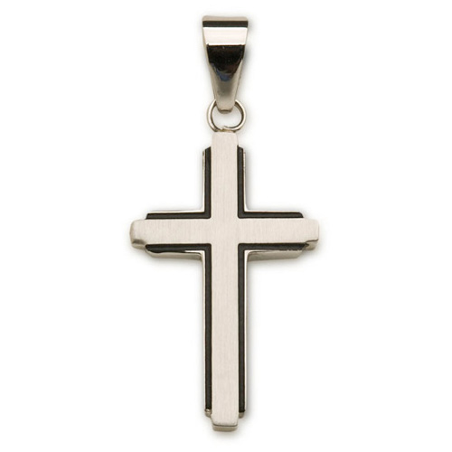 This men's steel cross has black enamel borders and comes with a stainless steel 24in ball chain. Cross is 1 1/4 inches tall. Deluxe gift boxed. This cross is made of the highest quality 316L stainless steel. Will not rust or tarnish and is naturally hypoallergenic.