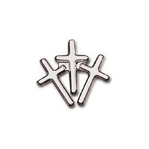 This 7/16 inch tall triple Latin cross tie tac is made of sterling silver. Deluxe gift boxed.