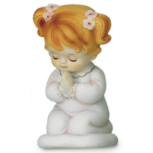 This baby room gift is a 6 inch tall porcelain night light figure of a girl praying.