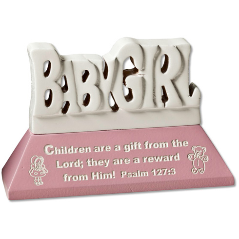 This pink standing wooden message plaque is laser cut with white lettering and art. Measures 2 1/2 by 4 inches.