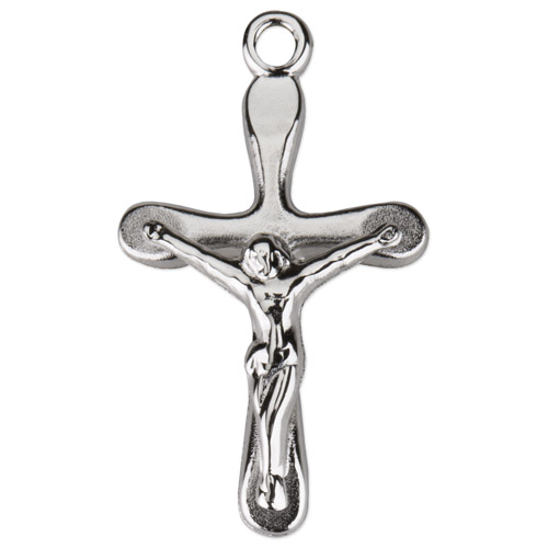 This tiny sterling silver freeform crucifix comes on a light weight 16 inch sterling silver chain. Crucifix length: 1/2in. Deluxe gift boxed.