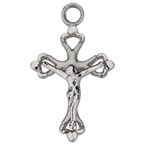 This sterling silver 1/2 inch tall fleur de lis crucifix comes on a light weight 18 inch sterling silver chain. Deluxe gift boxed.