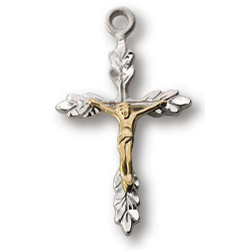 This sterling silver 5/8 inch tall floral crucifix comes on a light weight 18 inch sterling silver chain. Deluxe gift boxed.