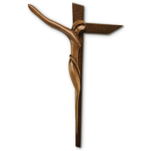 This 12 inch tall wall Crucifix is made of solid mahogany. Sleek modern designed cross and corpora.